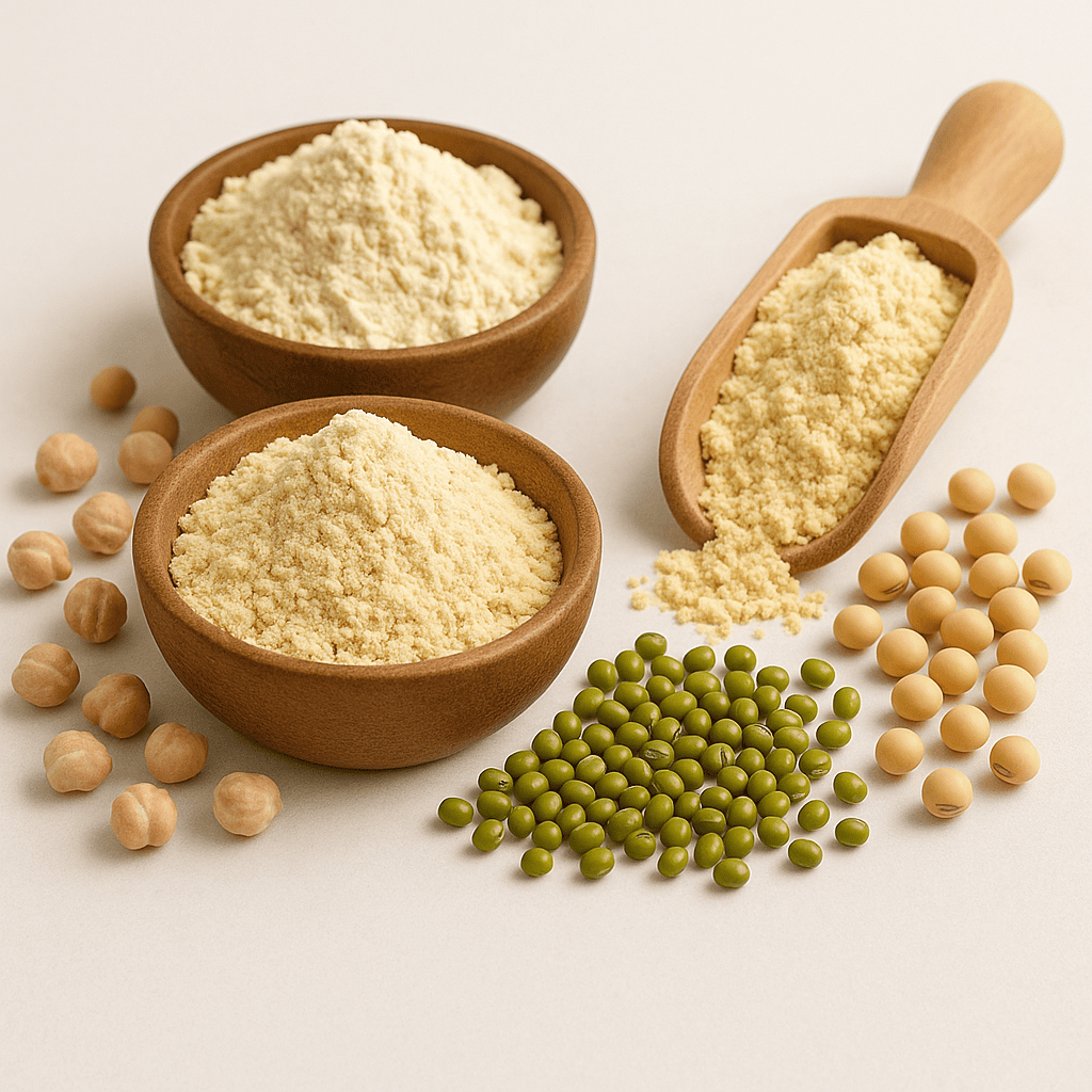 - Soya protein isolate, soya lecithin, and plant-based proteins